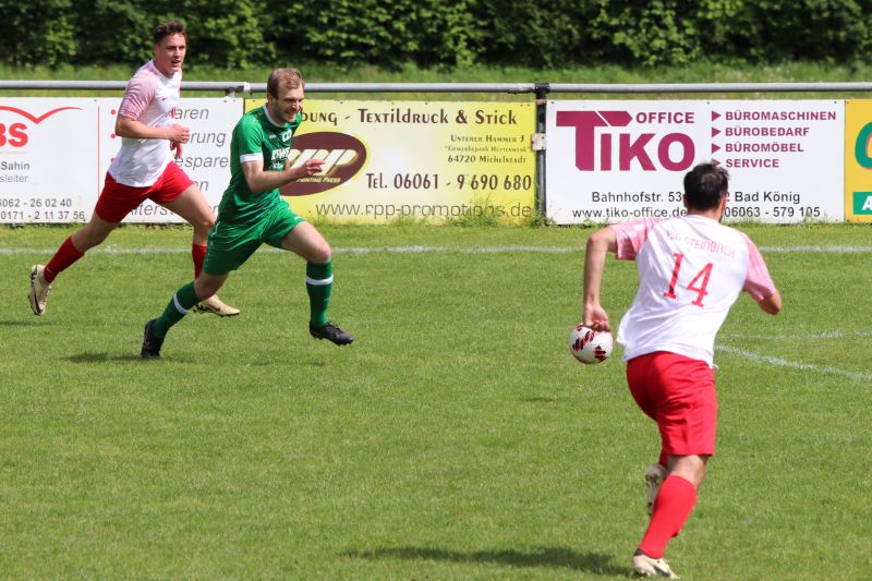 Eine Klatsche gab es für Absteiger FV Mümling-Grumbach bei der TSG Steinbach. Alen Cutura (17.) und Benjamin Reimer (21.) sorgten für das schnelle 2:0. In der 33. Minute legte Daniel Reimer zum 3:0-Pausenstand nach.